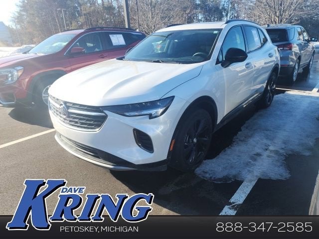 White Frost Tricoat 2023 Buick Envision Essence AWD 9-Speed Automatic 2.0L Turbocharged 3.47 Final Drive Axle Ratio, 4-Wheel Disc Brakes, 7 Speakers, 7-Speaker Audio System Feature w/Amplifier, 8-Way Power Driver Seat Adjuster, ABS brakes, Air Conditioning, Alloy wheels, AM/FM radio: SiriusXM, Apple CarPlay/Android Auto, Auto High-beam Headlights, Auto-dimming door mirrors, Auto-dimming Rear-View mirror, Automatic Emergency Braking, Automatic temperature control, Black Roof Rails, Body-Color Door Handles, Brake assist, Bumpers: body-color, Cargo Area Tray (LPO), Carpeted Front & Rear Floor Mats, Compass, Delay-off headlights, Driver door bin, Driver vanity mirror, Dual front impact airbags, Dual front side impact airbags, Electronic Stability Control, Emergency communication system: OnStar and Buick connected services capable, Following Distance Indicator, Forward Collision Alert, Four wheel independent suspension, Front anti-roll bar, Front Bin Center Console USB Ports, Front Bucket Seats, Front Center Armrest, Front dual zone A/C, Front Passenger 8-Way Power Seat Adjuster, Front Pedestrian Braking, Front reading lights, Fully automatic headlights, Heated door mirrors, Heated Driver & Front Passenger Seats, Heated front seats, Heated steering wheel, Illuminated entry, IntelliBeam Headlamp Control w/Auto High Beam, Knee airbag, Lane Keep Assist w/Lane Departure Warning, Low tire pressure warning, Lower Trim/Wheel Arch Moldings, Memory seat, Not Equipped w/Lane Change & Rear Cross Traffic Alerts, Not Equipped w/Rear Park Assist, Occupant sensing airbag, Outside temperature display, Overhead airbag, Overhead console, Panic alarm, Passenger door bin, Passenger vanity mirror, Perforated Leather-Appointed Seat Trim, Power door mirrors, Power driver seat, Power Liftgate, Power Panoramic Tilt-Sliding Moonroof, Power passenger seat, Power steering, Power windows, Preferred Equipment Group 1SL, Premium audio system: Buick Infotainment System, Radio data system, Radio: Buick Infotainment System AM/FM Stereo, Rear anti-roll bar, Rear Cargo Compartment Cover, Rear reading lights, Rear seat center armrest, Rear window defroster, Rear window wiper, Remote keyless entry, Security system, SiriusXM Radio, Speed control, Split folding rear seat, Spoiler, Sport Alloy Pedals, Sport Touring Package, Steering wheel mounted audio controls, Telescoping steering wheel, Tilt steering wheel, Traction control, Trip computer, USB Charging-Only Ports, Variably intermittent wipers, Wheels: 18 Machined Aluminum w/Light Silver Met, Wheels: 20 Aluminum w/Dark Finish, Wireless Apple CarPlay/Wireless Android Auto.